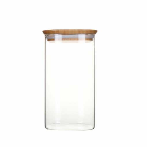 Pebbly Square Canister With Bamboo Lid Medium
